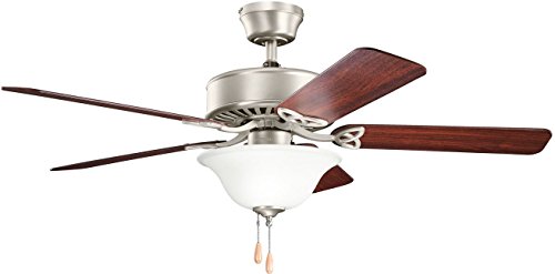Feature: Kichler Lighting 330103NI Renew Select Es 50-Inch 2-Light Energy Star Ceiling Fan, Brushed Nickel Finish with Reversible Blades and White Etched Glass Shade